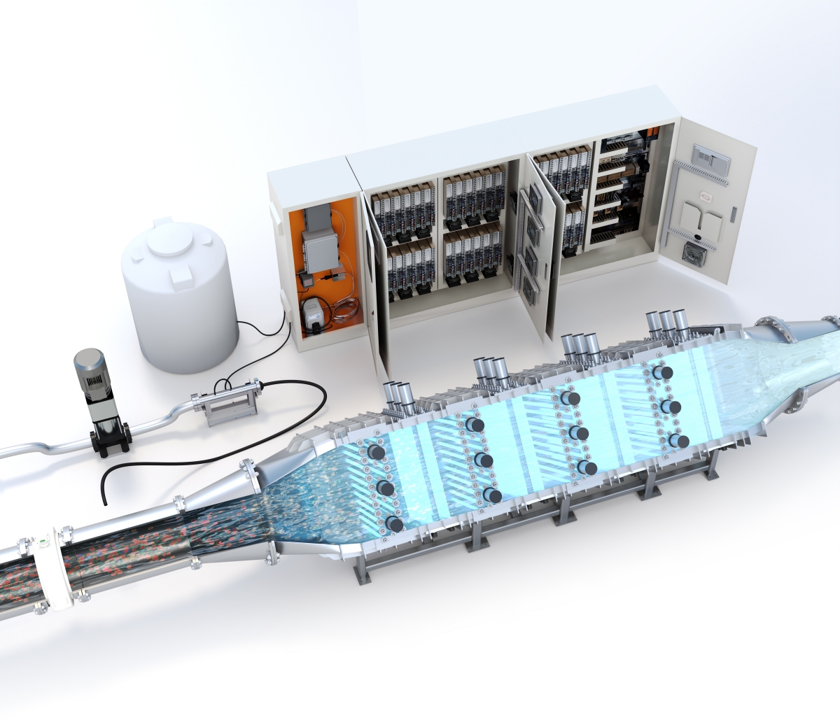 저압 UV AOP는 254nm 단파장 자외선을 조사할 수 있는 저압 램프를 사용하여 각종 오염 유기물질을 제거합니다. 저압 UV AOP는 에너지 효율적으로 운영이 가능한 타입입니다.